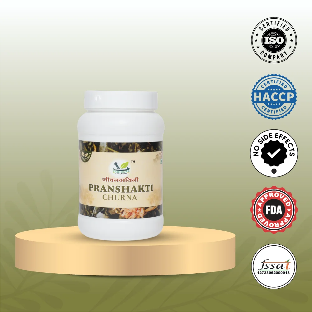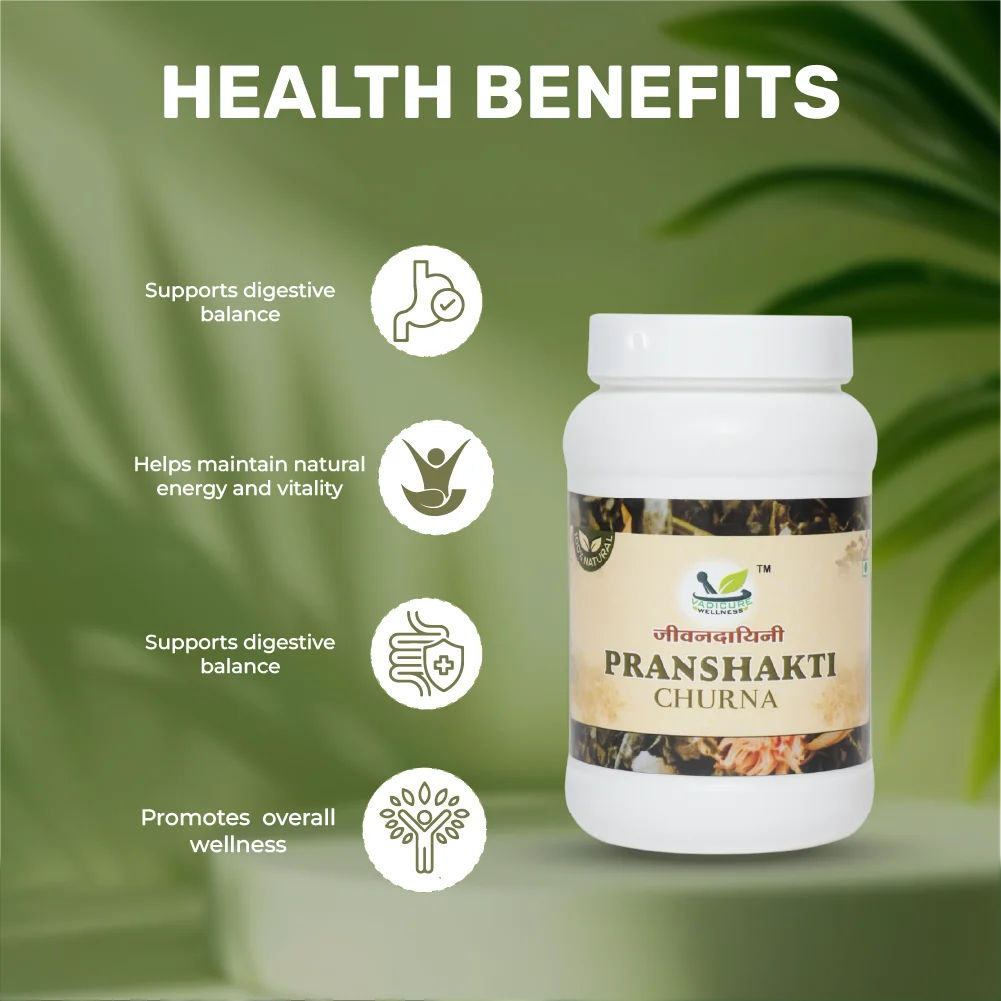 Pranshakti Jeewandayani Churn is prepared with natural herbs inspired by traditional Ayurvedic knowledge. It is free from artificial additives and made with care to bring you a trusted wellness companion.