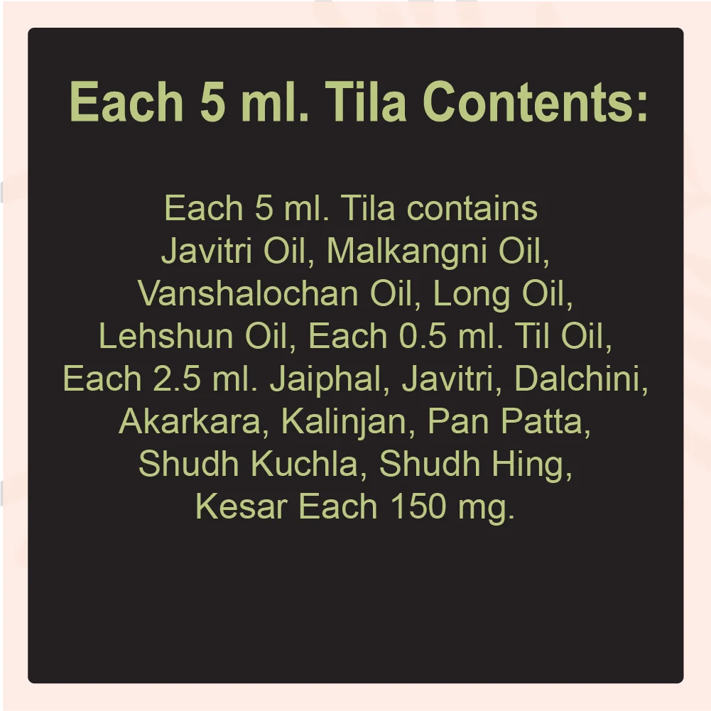 This preparation blends Javitri Oil, Malkangni Oil, Vanshalochan Oil, and Til Oil with herbs like Jaiphal, Dalchini, Akarkara, Pan Patta, Shudh Kuchla, Hing, and Kesar. Each drop carries the richness of nature’s extracts, brought together in a carefully balanced formulation.