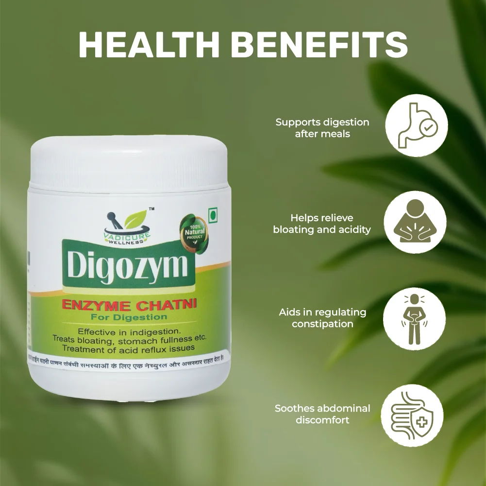 Crafted in a chutney form, it helps ease common digestive discomforts like bloating, acidity, and stomach heaviness. With regular use, it supports healthy bowel movements and appetite regulation. Whether after a heavy meal or part of your daily routine, Digozym Chatni is a natural way to complement your diet.